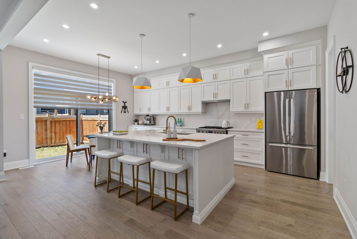 Stunning executive Mattamy home in desirable Upper Joshua Creek! Thousands spent on premium upgrades and modern design details throughout. Soaring 10' ceilings, elegant waffle accents, European plank hardwood floors, and oversized windows fill the main level with light. The open-concept great room features a custom gas fireplace and designer finishes. The chef's kitchen impresses with quartz countertops, stainless steel appliances, oversized island, custom cabinetry, and a walk-in pantry. Upstairs offers 9' ceilings, a luxurious primary suite with spa-inspired ensuite, plus 3 additional bedrooms (2 with walk-ins) and a convenient laundry room. Fully fenced backyard, interior garage access, and rough-in basement bath add flexibility and function. Close to top-rated schools, parks, shopping, and highways-this home delivers true luxury living.