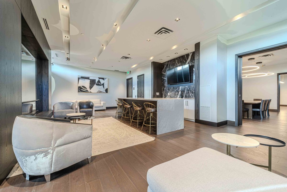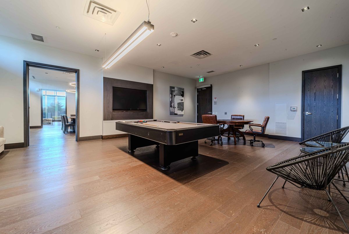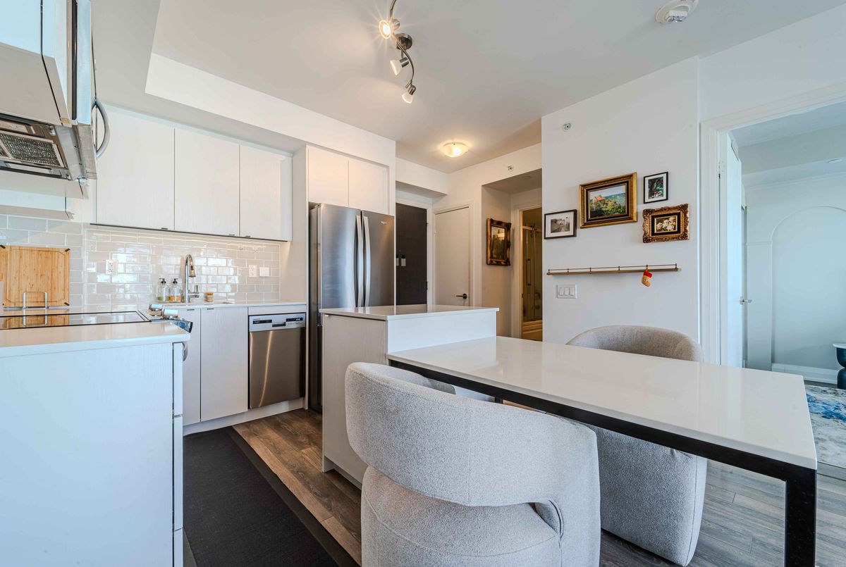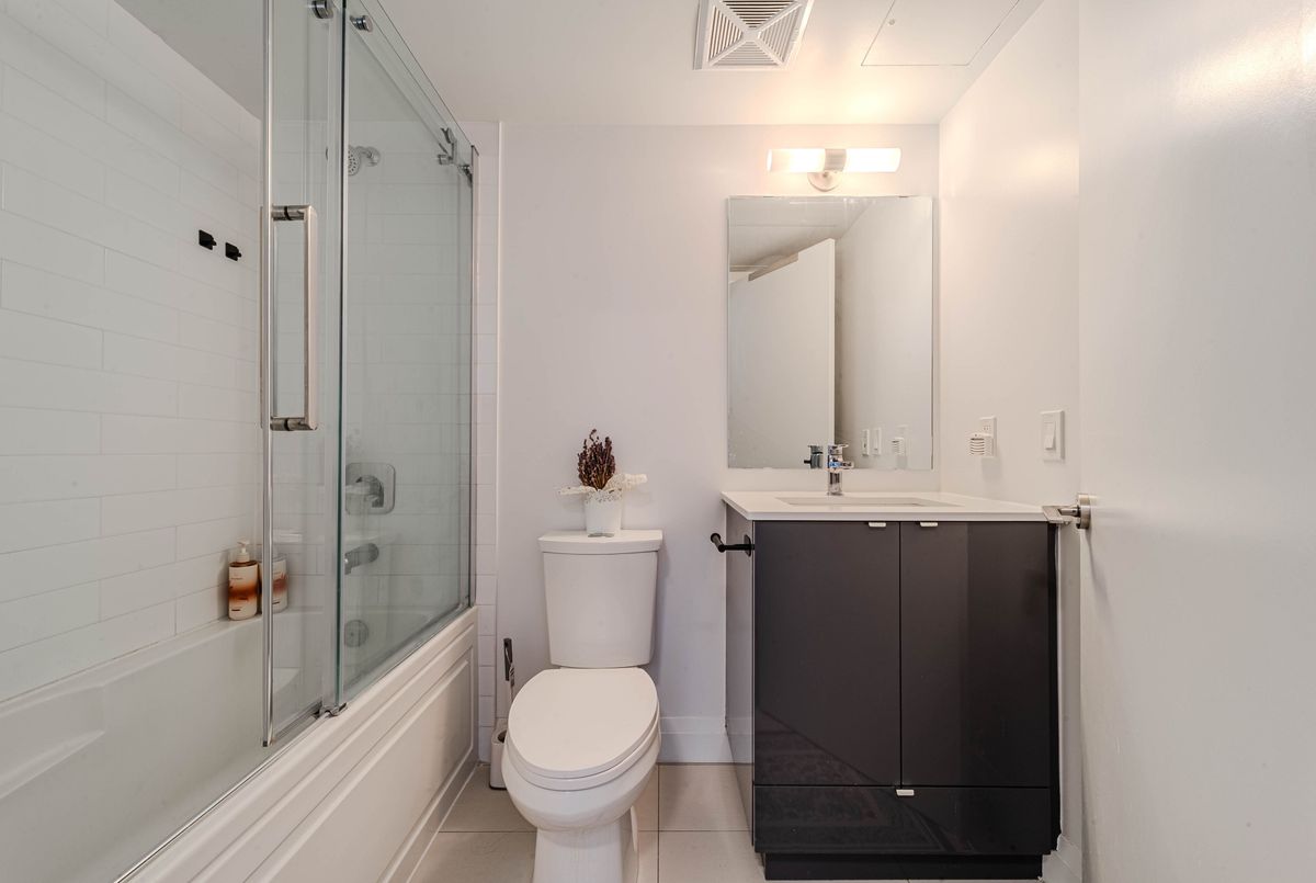 **3D Virtual Tour** Sophisticated city living in this beautiful 1-bedroom, 1-bathroom condo! This bright unit features an open-concept layout with floor-to-ceiling windows for abundant natural light. The modern kitchen is equipped with sleek quartz countertops and premium stainless steel appliances, blending style with everyday functionality. Relax in your bathroom with the glass-enclosed shower/tub combo. Step out onto your private balcony to enjoy the fresh morning air! Easy access to amenities such as gym, games room, and lounges, dog wash, car wash, and communal BBQ. Just steps from the shops, restaurants, public transit, and parks. Option to add EV charging station to parking spot for ultimate convenience!