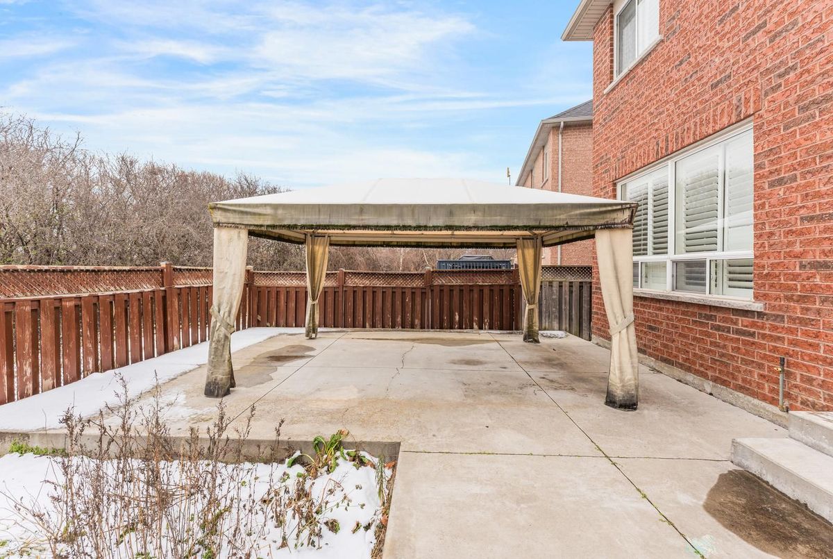 Welcome to 28 Cape Dorset Crescent, a 4-bed, 2-storey detached home set on a premium ravine lot in one of Brampton's most desirable family-friendly communities, offering a rare blend of modern living and serene natural surroundings. This elegant residence features an open-concept main floor highlighted by a stunning upgraded modern kitchen with quartz counters, stylish backsplash, and a walkout to a peaceful, professionally landscaped backyard oasis complete with a charming gazebo-perfect for entertaining or unwinding in total privacy with nature as your backdrop. The interior showcases thoughtful upgrades including custom California shutters, designer lighting, and a wrought-iron staircase that enhances the home's sophisticated feel. Upstairs, four generously sized bedrooms provide comfort and flexibility for growing families, guests, or home office needs. With its combination of upscale finishes, spacious layout, and unmatched ravine views, this home offers a lifestyle of tranquility, beauty, and everyday convenience-truly a rare offering in a highly sought-after neighbourhood.