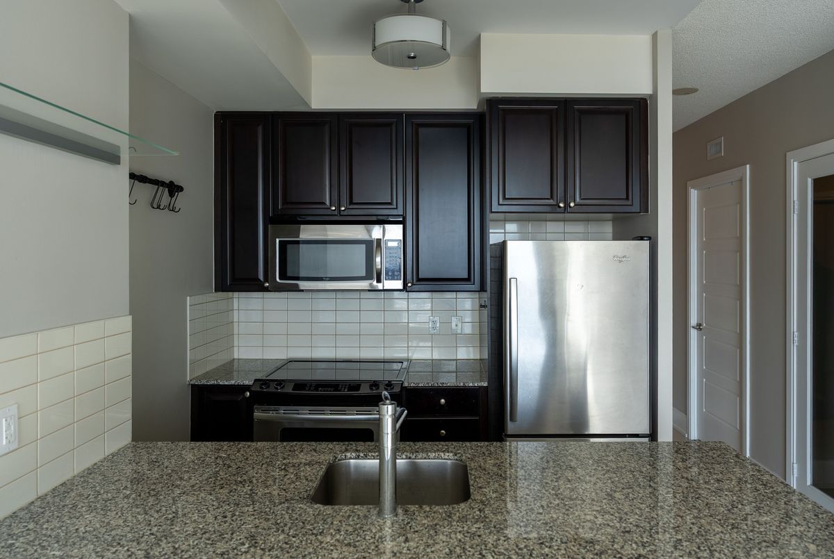 Welcome to this bright and beautifully maintained 1 bedroom plus fully enclosed double glass door den suite at the sought-after Parc Nuvo by Tridel. Featuring a southeast exposure with unobstructed panoramic views extending all the way to Lake Ontario, this home is filled with natural light throughout the day. Functional open-concept layout with a full kitchen, spacious living and a versatile den ideal for a home office, guest room or creative space. Includes in-suite washer and dryer, one underground parking space on P3, and one locker for added convenience. Prime location steps to Kipling Subway and GO Transit, with quick access to highways, shopping, restaurants, and everyday amenities. Well-managed building with excellent amenities including concierge, fitness centre, pool, sauna, party room, and more. An exceptional opportunity for end users or investors seeking light, views, and unbeatable transit access.