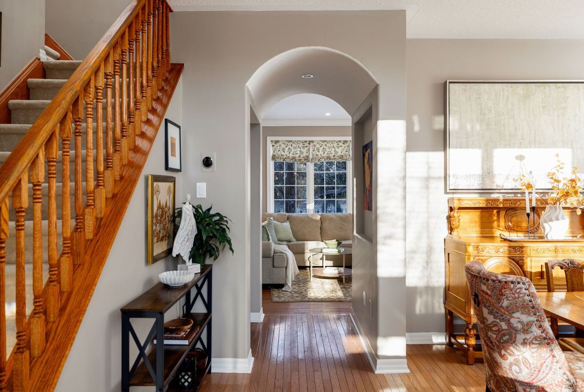 Beautifully maintained and updated Mattamy-built 'St Andrews' model home for sale in Oakville, ideally located on a private, pool-sized corner lot in the highly sought-after West Oak Trails community. Set within a top-rated school catchment with several schools within walking distance, and surrounded by parks, playgrounds, and scenic trails, this is an ideal family-friendly neighbourhood. Minutes to Oakville Trafalgar Memorial Hospital, shopping, dining, and everyday amenities, with quick access to the QEW, 407ETR and GO Station for commuters. Professionally landscaped grounds feature mature trees, lush gardens, an interlocking stone walkway (2017), and a fully fenced backyard oasis with landscape lighting, a large deck and lower patio-perfect for outdoor entertaining. This bright home offers 4 bedrooms, 2.5-bathrooms and an elegant, yet functional floor plan with oversized wi 9-foot ceilings, hardwood flooring, crown mouldings, and added pot lights. Upgraded model with dining room bay window, Palladian window in loft plus 6 additional south facing windows. A dramatic two-storey living room flows into the dining area, while the redesigned family room (2017) features a gas fireplace, custom built-ins, and serene backyard views. The updated kitchen (2025) showcases refaced cabinetry, quartz countertops, stainless steel appliances, pull-out organizers, and a generous breakfast area with a walkout. Upstairs includes a loft with a cathedral ceiling, four spacious bedrooms, and two luxurious bathrooms, including the primary suite with a renovated 5-piece ensuite (2020) featuring a freestanding soaker tub and glass shower. The immaculate lower level offers potential for additional living space and has a rough-in for a future bathroom. The list of improvements is extensive, making this home move-in ready with exceptional long-term value in one of Oakville's most desirable neighbourhoods.