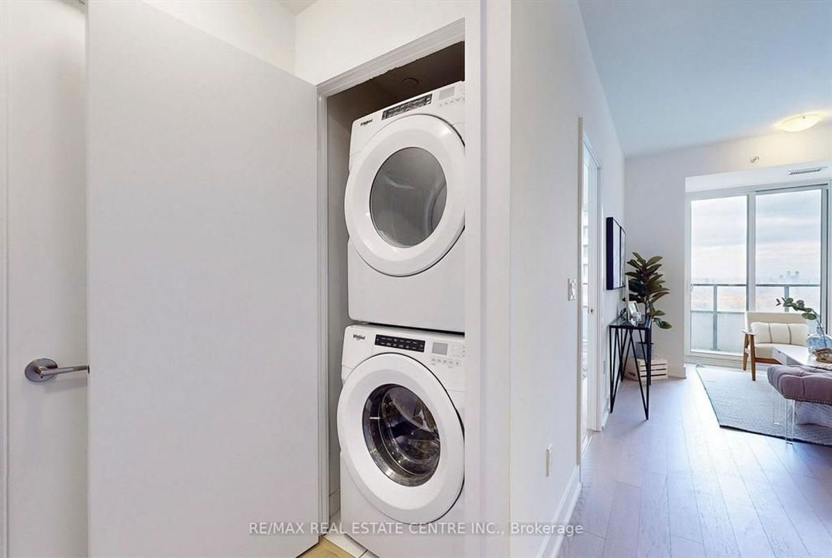 Experience the allure of waterfront living in this charming 1 Bed + Den, 1 Bath condo. Large windows and laminate floors throughout. Renovated kitchen with quartz countertop stainless steel appliances. Nestled amidst Toronto's scenic Humber Park, the Martin Goodman Trail, and an expansive shoreline. Positioned near fantastic dining spots, shopping outlets, the LCBO, and cozy cafes, and conveniently situated along TTC and GO Transit lines. Enjoy seamless access be it biking, walking, driving, or utilizing 24-hour concierge. Resort-Style Amenities: Indoor Pool, BBQ Area, Gym, Pool, Kids Play Area, Party Rooms, Lounges, Theatre Room, Game Room, Spa Room, Private Dining Rooms. Amenities for LIMITED units: Access available to Penthouse Water Lounge, Access to Wine Cellar (Cold Room) Locker and Humidor. FREE classes available throughout the week viz. Full Body Workout, Zumba, Recreational Yoga, Aquafit/Swimming Lessons and much more. Inclusions: Fridge, Stove, B/I Rangehood and Microwave, Dishwasher, Stackable Washer/Dryer. 1Locker + 1parking. Heat included in maintenance fee.
