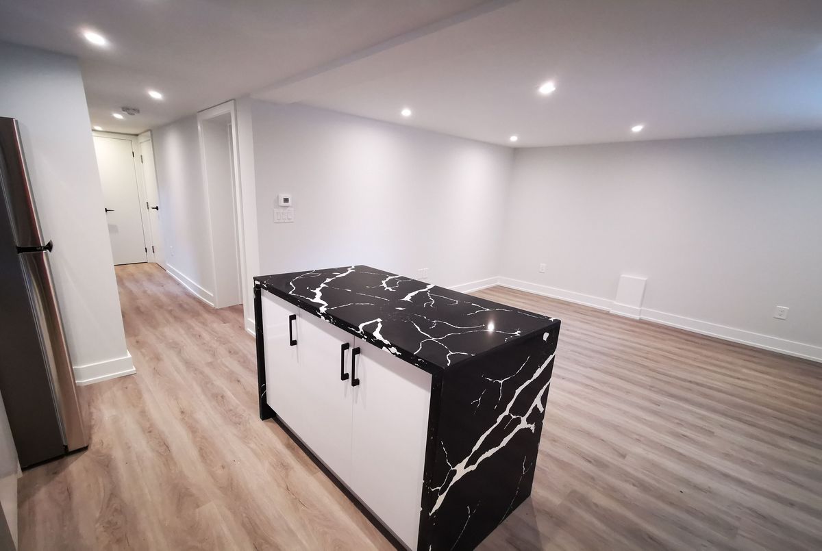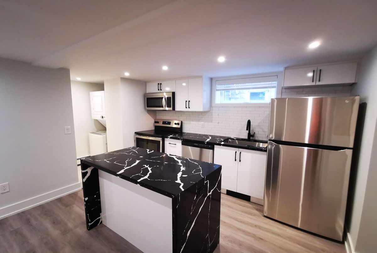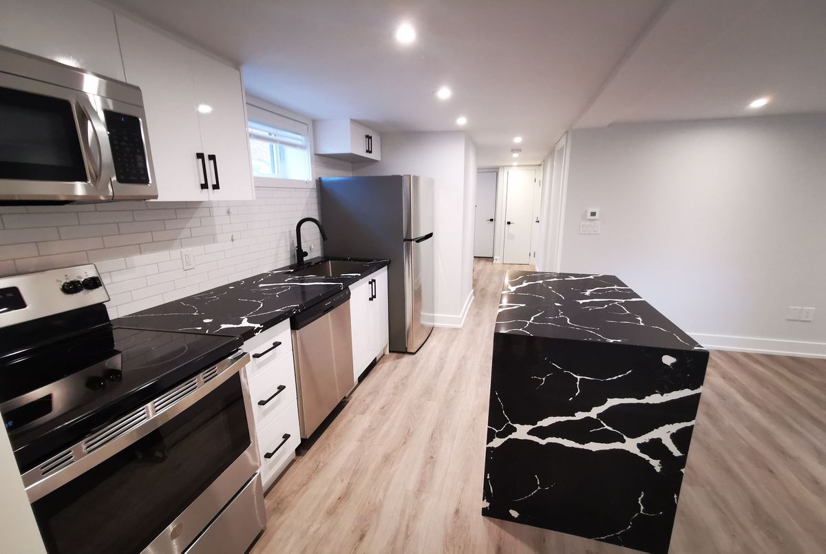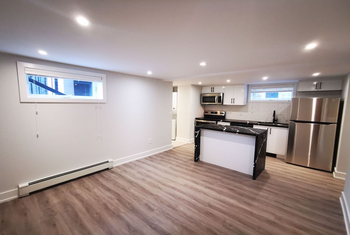 Bright and spacious 1-bedroom, 1-bathroom lower level suite, fully renovated in 2021 andideally located just steps from Eglinton and the newly operational Crosstown LRT. Thisthoughtfully updated unit features 7 ft ceilings, luxury vinyl flooring, pot lights, and asleek modern kitchen complete with stainless steel appliances, granite countertops, and acentre island. Enjoy the convenience of ensuite laundry, two separate private entrances, and arare detached garage parking space. Perfectly positioned just moments from the Eglinton WestSubway Station, the LRT, shops, restaurants, and everyday amenities, offering easy access totransit and vibrant city living.