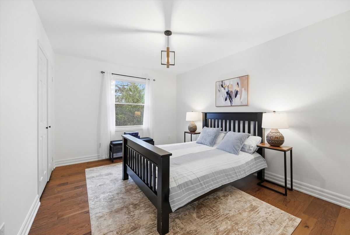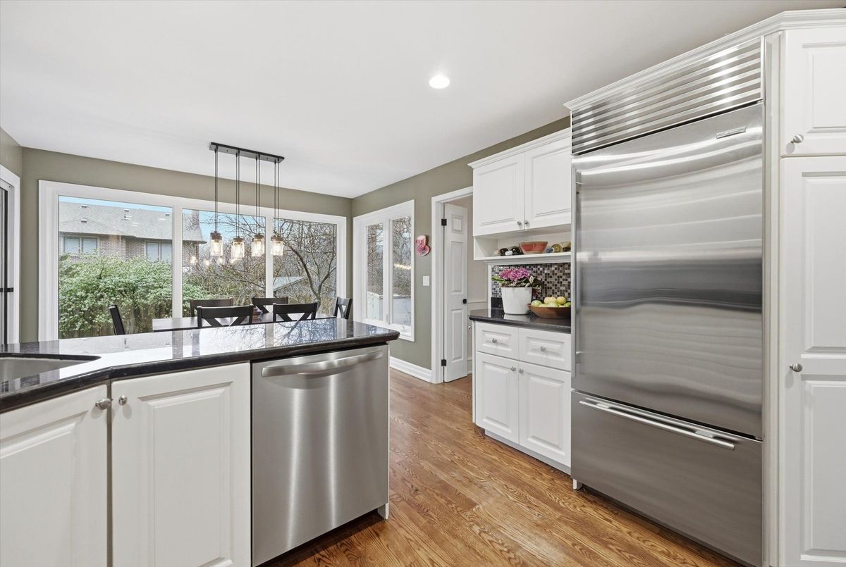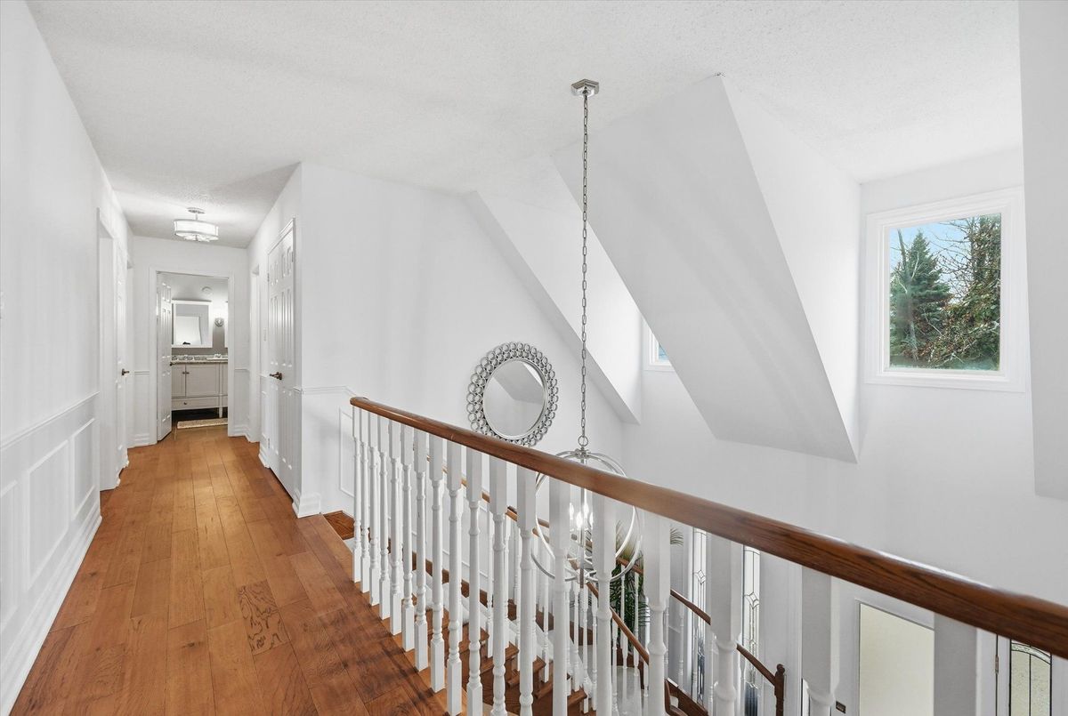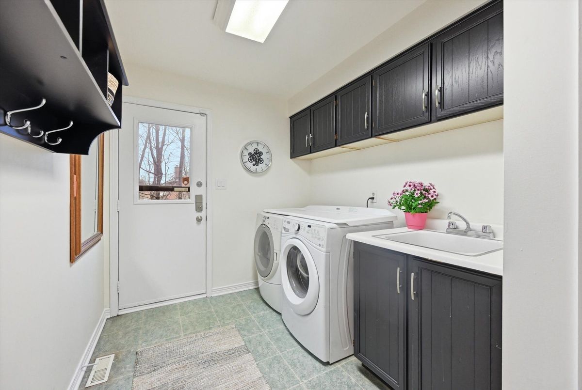THE HEART OF GLEN ABBEY! OVERSIZED PIE-SHAPED LOT! QUIET CUL-DE-SAC OF ONLY 15 HOMES! Nestled on a quiet cul-de-sac of just 15 homes, this beautifully updated four-bedroom residence sits on an oversized pie-shaped lot siding onto a walking trail offering an unbeatable setting. Built by Arthur Blakely and designed for modern family living, the main level features rich hardwood flooring, elegant formal living and dining rooms, and a cozy family room with a woodburning fireplace and custom built-in cabinetry. The updated chef's kitchen is both stylish and functional, complete with granite countertops, designer backsplash, built-in appliances, a large pantry, and a bright breakfast area with walkout to the patio. Engineered hardwood flooring flows seamlessly throughout the upper level. The primary bedroom offers a walk-in closet and a spa-inspired five-piece ensuite with double sinks and a skylight. Three additional bedrooms and a well-appointed five-piece bath complete the upper level. The finished basement adds exceptional living space with new laminate flooring, large recreation/games area with custom bar, an office with custom cabinetry and bookshelves, three-piece bath, and ample storage. Additional highlights include a grand two-storey foyer, updated kitchen and bathrooms, California shutters, wainscoting, convenient main floor laundry room with side yard access, hardwood staircase with carpet runner, and replaced garage doors. Step outside to a private backyard featuring a stunning stone patio, mature trees, and professionally landscaped gardens - a perfect setting for relaxing or entertaining. Ideally located within walking distance of parks, trails, and Monastery Bakery, and close to top-rated schools including Abbey Park High School, shopping, dining, hospital, major highways, and GO Train. A perfect family home in one of Glen Abbey's most sought-after locations! (certain exterior images have been digitally enhanced)