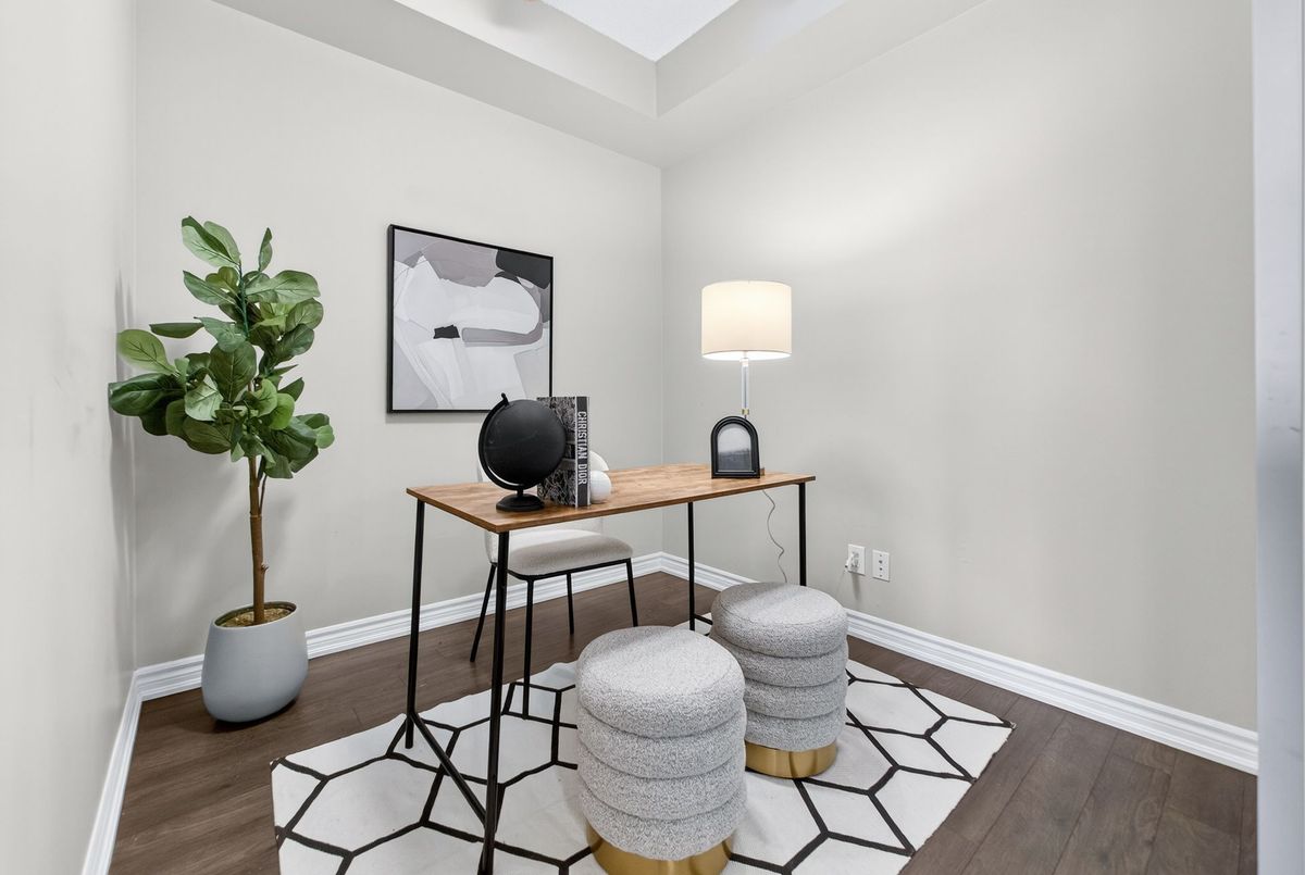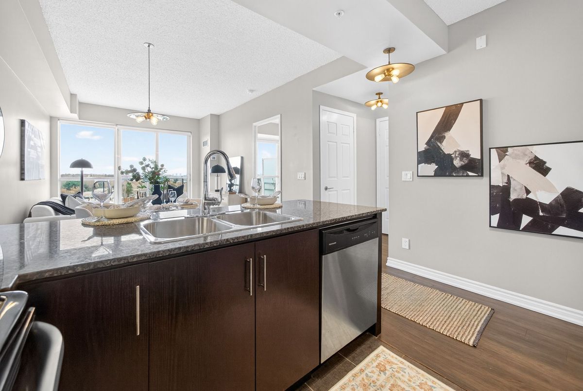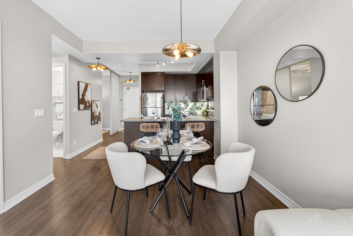 Rare Find - Sun-Drenched 1+Den with 2 Full Baths & Breathtaking CN Tower Views! Step into this meticulously maintained, one-of-a-kind suite offering 670 SqFt of sophisticated carpet-free interior living space plus 105 SqFt of private covered balcony. Nestled in one of Toronto's most sought-after vibrant neighborhoods, this unit defines "open-concept" living featuring a Rare Two-Full-Bathroom configuration-perfect for guests or a roommate. Be inspired by the seamless flow, neutral designer palette, & Grand-scale windows that flood the Condo with natural light. Designed for the culinary enthusiast, the kitchen boasts premium granite countertops, stainless steel appliances and extensive taller cabinetry providing a wealth of storage without compromising on style and a versatile breakfast bar perfect for morning coffee or evening entertaining. Experience boundless views from the primary bedroom, where massive architectural windows turn the Toronto skyline into your personal backdrop. Maximize your productivity in the oversized den with seamless glass partitions which serves as a premier executive home office, offering a private, quiet workspace without sacrificing the suite's open and airy aesthetic.Step out onto your private, covered oasis to soak in the iconic Toronto skyline, where uninterrupted vistas of the CN Tower provide a breathtaking backdrop for your evening glass of wine. Surrounded by elite dining, seamless transit, and boutique shopping, this home offers the pinnacle of urban living. From the vibrant energy of the street to your private sanctuary above, this is truly A Must-See Property.