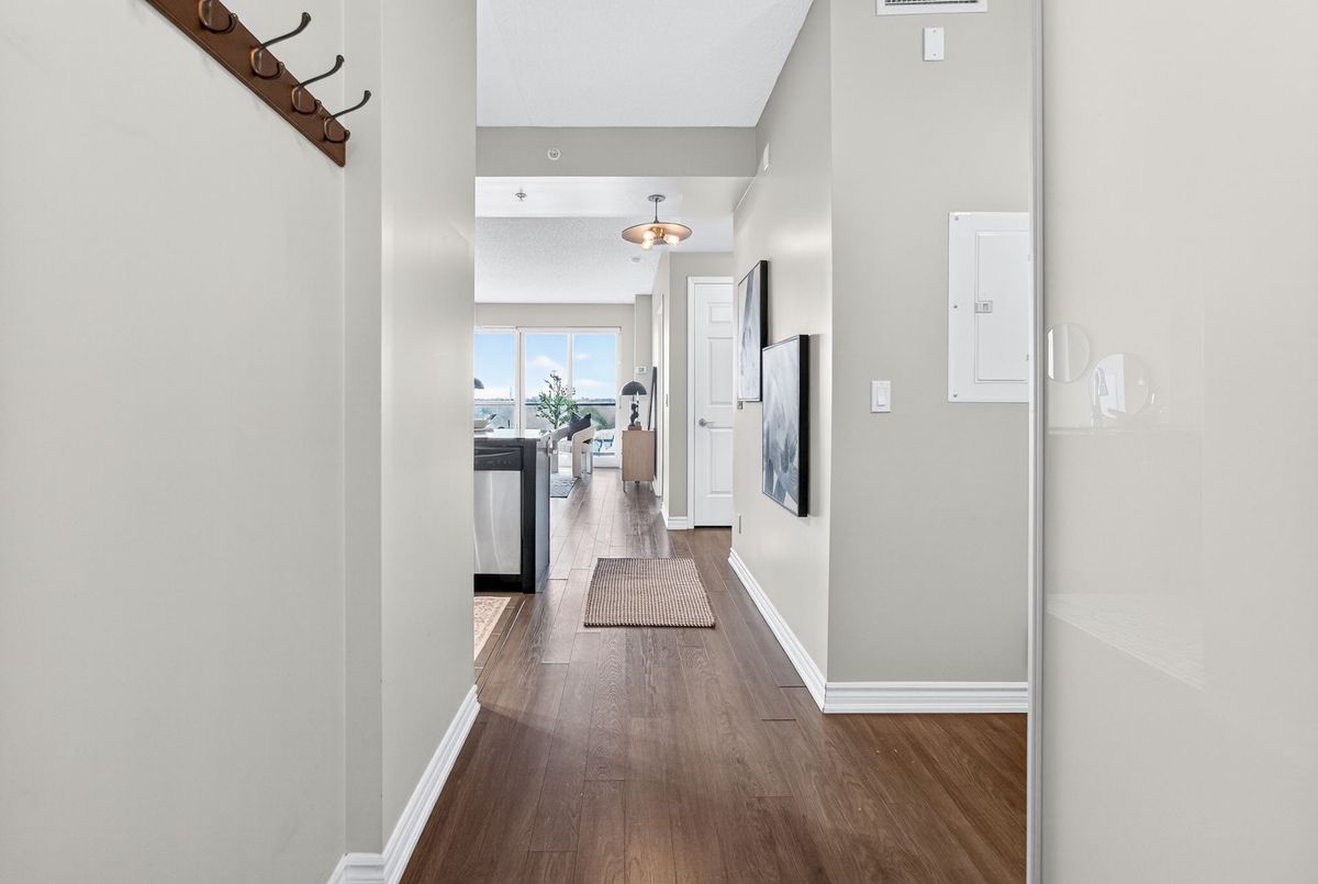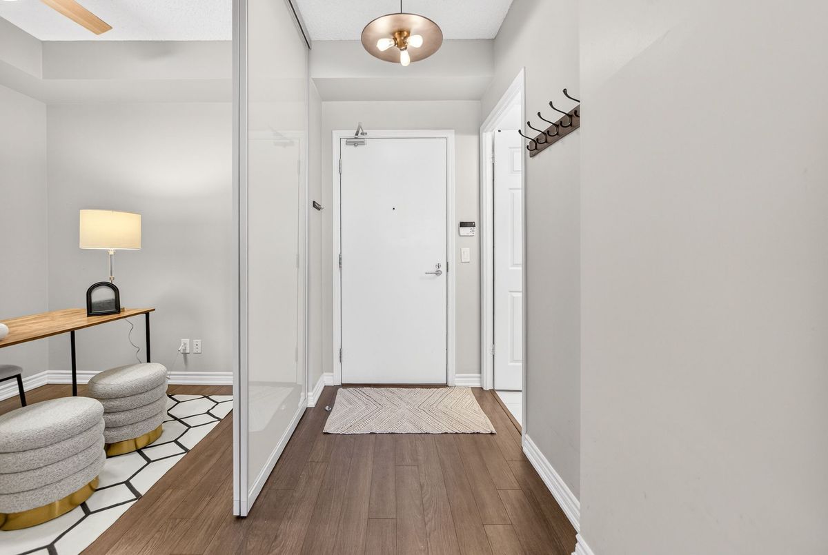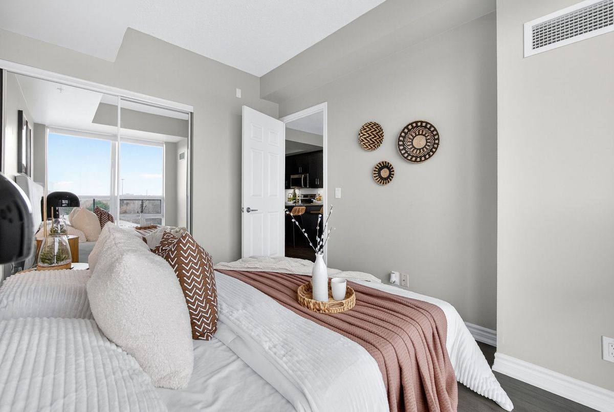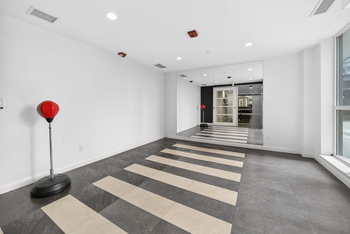 Rare Find - Sun-Drenched 1+Den with 2 Full Baths & Breathtaking CN Tower Views! Step into this meticulously maintained, one-of-a-kind suite offering 670 SqFt of sophisticated carpet-free interior living space plus 105 SqFt of private covered balcony. Nestled in one of Toronto's most sought-after vibrant neighborhoods, this unit defines "open-concept" living featuring a Rare Two-Full-Bathroom configuration-perfect for guests or a roommate. Be inspired by the seamless flow, neutral designer palette, & Grand-scale windows that flood the Condo with natural light. Designed for the culinary enthusiast, the kitchen boasts premium granite countertops, stainless steel appliances and extensive taller cabinetry providing a wealth of storage without compromising on style and a versatile breakfast bar perfect for morning coffee or evening entertaining. Experience boundless views from the primary bedroom, where massive architectural windows turn the Toronto skyline into your personal backdrop. Maximize your productivity in the oversized den with seamless glass partitions which serves as a premier executive home office, offering a private, quiet workspace without sacrificing the suite's open and airy aesthetic.Step out onto your private, covered oasis to soak in the iconic Toronto skyline, where uninterrupted vistas of the CN Tower provide a breathtaking backdrop for your evening glass of wine. Surrounded by elite dining, seamless transit, and boutique shopping, this home offers the pinnacle of urban living. From the vibrant energy of the street to your private sanctuary above, this is truly A Must-See Property.