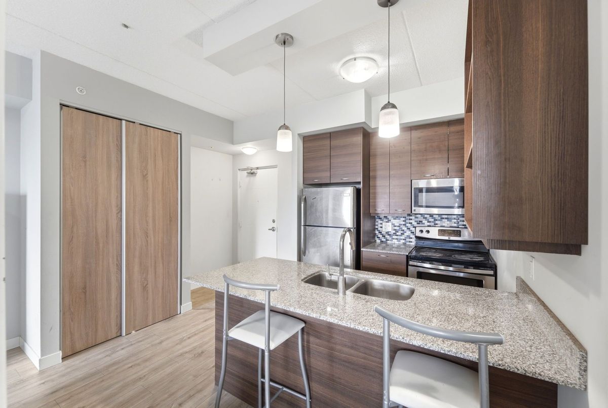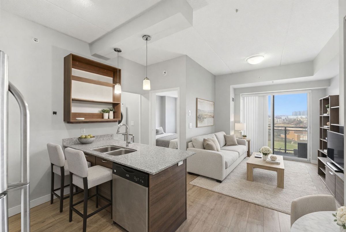 Calling all investors, parents of university students, and young professionals! Welcome to Sage Condos in Waterloo's vibrant University Core. This spacious one-bedroom, one-bathroom suite offers just under 600 sq ft of thoughtfully designed living space. The open-concept layout features a modern kitchen complete with stainless steel appliances and ample cabinetry, seamlessly flowing into a bright and inviting living area. Large windows fill the space with natural light, while the private balcony showcases expansive city views. The bedroom is generously sized and offers comfortable, functional living. Additional highlights include in-suite laundry for added convenience .Ideally located just steps from the University of Waterloo and Wilfrid Laurier University, this is a prime opportunity in one of the city's most reliable rental markets. Enjoy walkable access to shops, restaurants, transit, including the LRT and GO Bus Station, and all essential amenities. Sage Condos offers desirable building amenities such as a rooftop terrace, fitness center, party room, and high-speed internet. Whether you're expanding your investment portfolio, securing a home for a student, or seeking a well-located urban residence, this is a smart and versatile opportunity in the heart of Waterloo. Some images have been virtually staged for illustration purposes.
