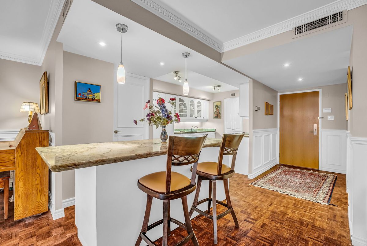 Welcome to the popular Market Square at 80 Front Street East where you find spacious living in low rise historical neighbourhood close to everything. Bright and spacious 1,305 sf unit with a large primary bedroom suite, great open living space including a den and a solarium looking over tree-lined path between the unit and the new North St Lawrence Market. Parquet floors throughout in excellent condition, crown mouldings, loads of storage. The kitchen has been opened with a centre island/breakfast bar and a walk-in pantry. The primary bedroom is large with a walk-in closet and an ensuite bathroom with a separate bath and shower stall. Den currently set up as a dining room, leaving an extra-large living room, but it can be made into a separate room. Very friendly community building with long-term residents, loads of amenities including indoor swimming pool, squash courts, gym, library, rooftop deck, 24-hour concierge and more. So close to Market, restaurants, Union Station, and Billy Bishop airport. Parking and Locker included. ...