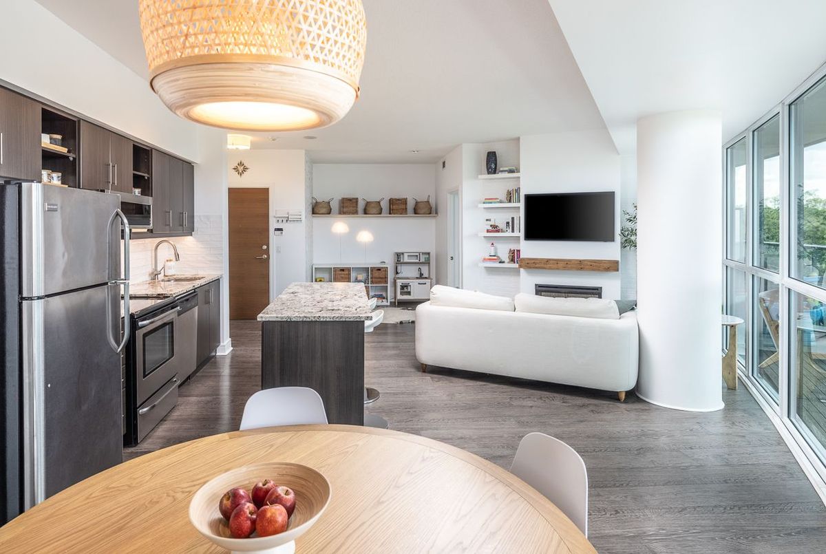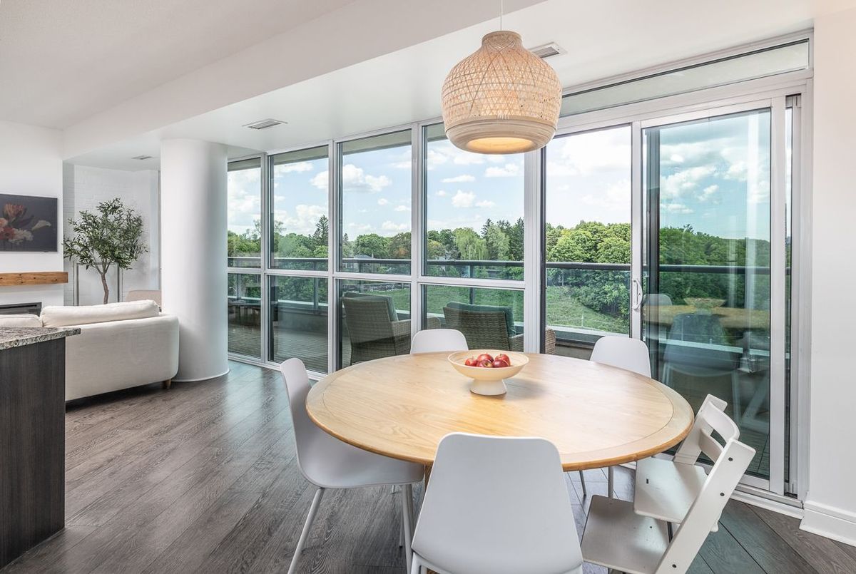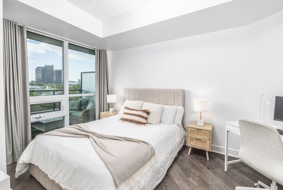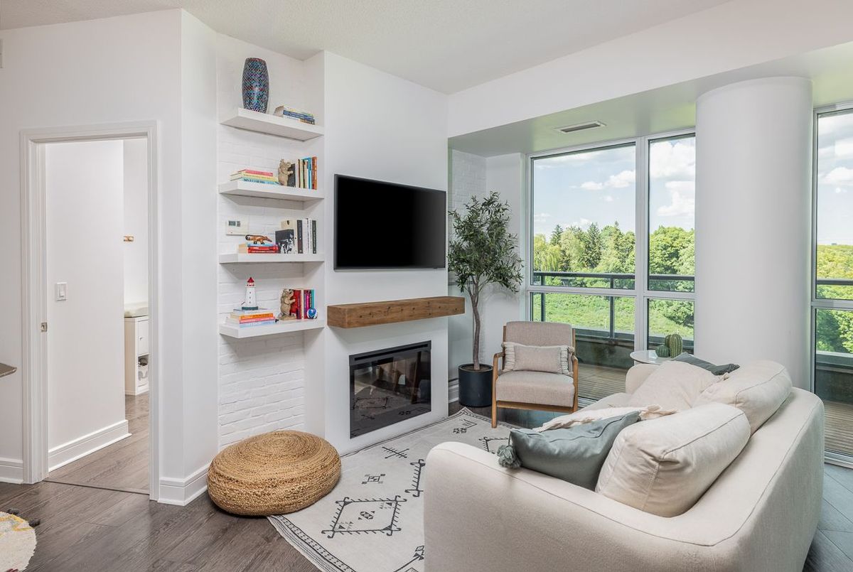 Experience Elevated Living in the Heart of Midtown Toronto. Step into sophistication with this beautifully appointed 2 bedroom + den suite, complete with 2 full bathrooms, premium custom upgrades including electric fireplace, custom shelving, custom California Closets, custom kitchen backsplash and a sleek open-concept design that extends to a expansive wrap-around balcony with unobstructed views of Sunnybrook Park, perfect for entertaining or simplyunwinding as the sun goes down at the end of the day. This suite includes two parking spots and two storage lockers, perfect for those looking to upsize from a smaller condo or downsize from a larger home. Enjoy luxury amenities such as 24- hour concierge, first-class fitness centre, indoor pool, sauna, guest suites, community BBQ and visitor parking, all within a modern building. Perfectly situated just moments from Leaside's vibrant shops and dining, with seamless access to the Eglinton LRT and DVP, this is ultimate urban living.