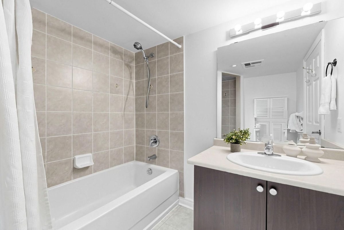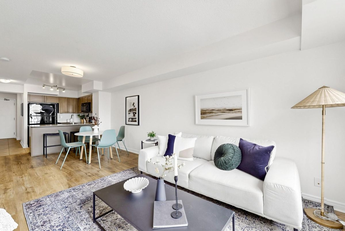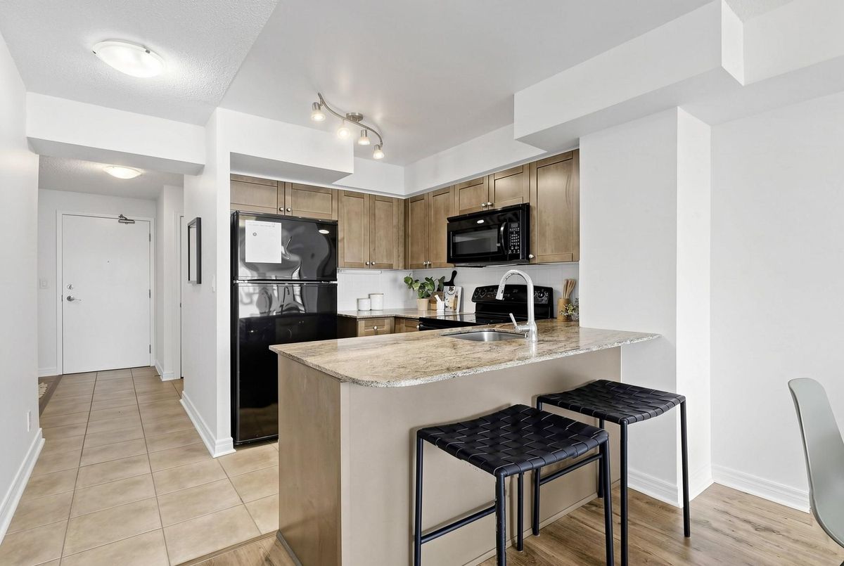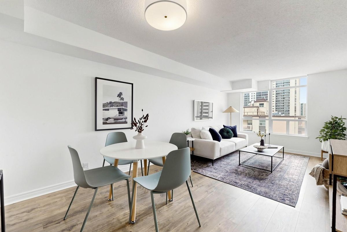 This bright, feel-good 1-bedroom + den offers nearly 700 sq ft of stylish, easy living in the heart of Cabbagetown. The layout just gets it whether you're working from your den, hosting friends, or winding down after a long day, everything flows effortlessly.The kitchen is sleek and social, featuring granite countertops and a breakfast bar that opens seamlessly into the living space so you're always part of the moment. The bedroom is a comfortable retreat with its own ensuite and generous his & hers closets (because one closet is never enough). There's also a separate powder room for guests, making entertaining that much easier. Step out onto your private balcony for a breath of fresh air and city views perfect for morning coffee or a relaxed evening wind-down.Residents enjoy an impressive suite of amenities, including a fully equipped gym with sauna, rooftop terrace with panoramic city views, BBQ area, party room, 24-hour concierge, and a quiet library space for added flexibility.Owned parking and a locker provide valuable everyday convenience, while the location puts you right in the centre of it all just steps to downtown's best grocery stores, restaurants, social bars, parks, and quick highway access.Effortless downtown living with space, style, and everything you need right where you want it.