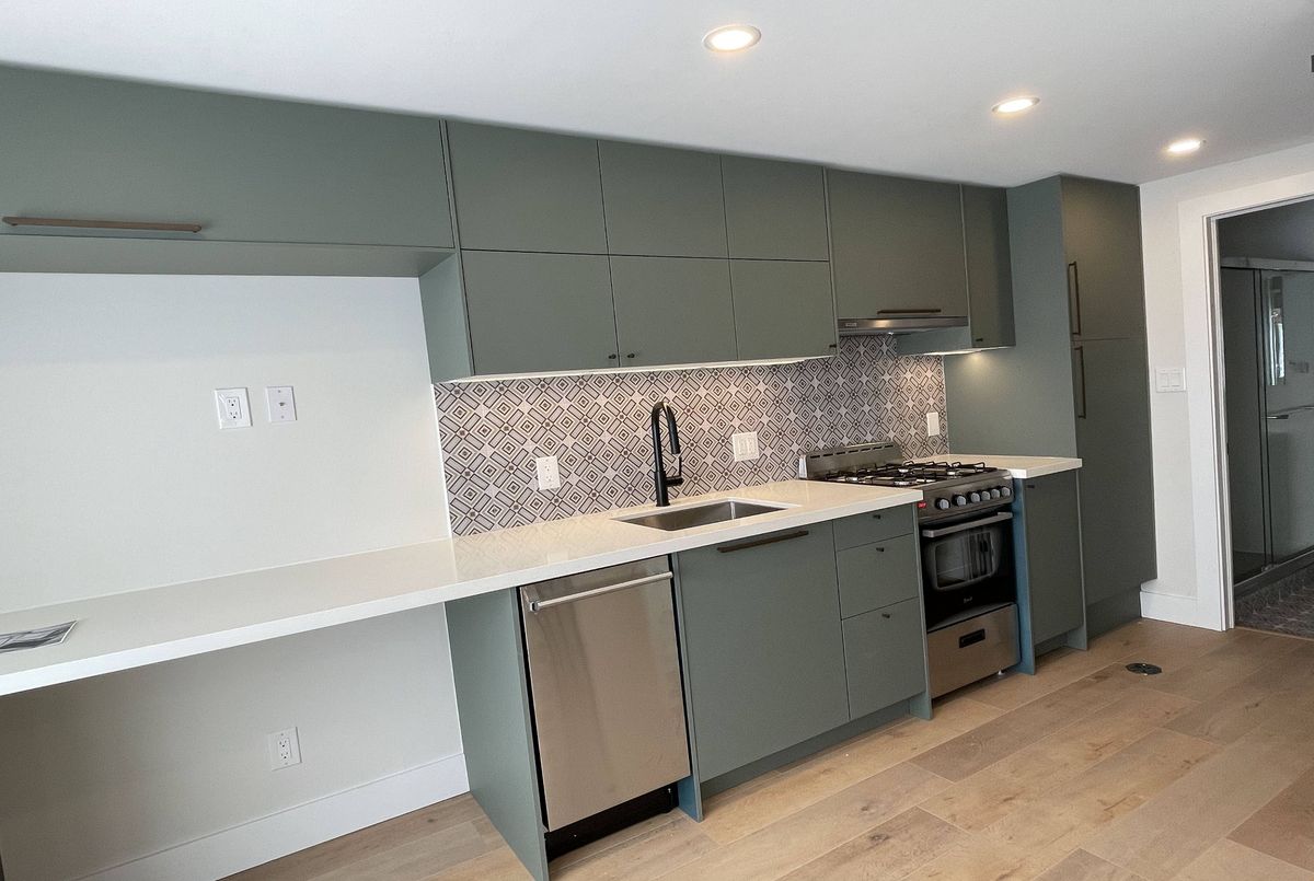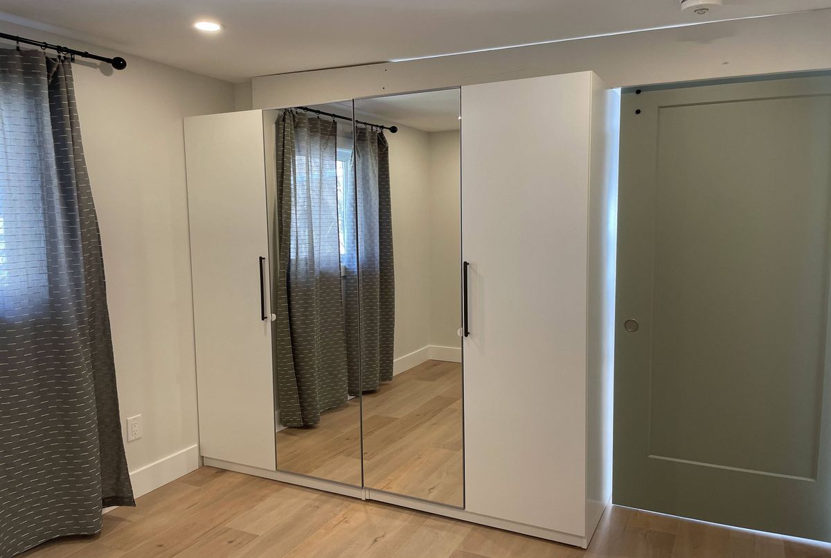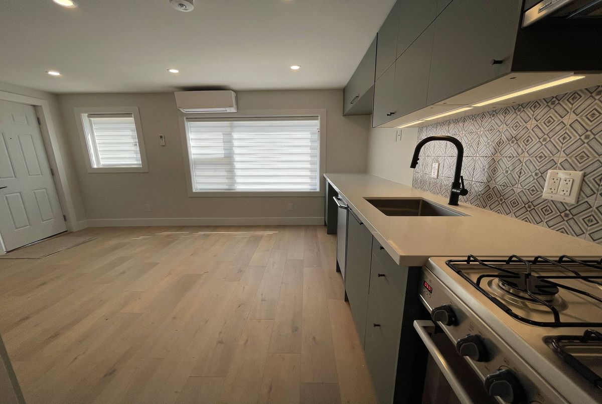 Gorgeous coach house apartment. It's like your own house. Modern finishes: kitchen cabinets, stainless steel appliances, gas stove. Laminate floors t/o. Large 4 pc bathroom, private laundry. Large bright bedroom with closet organizer. Efficient radiant heating with own control. Own wall air conditioner. One parking spot included.
